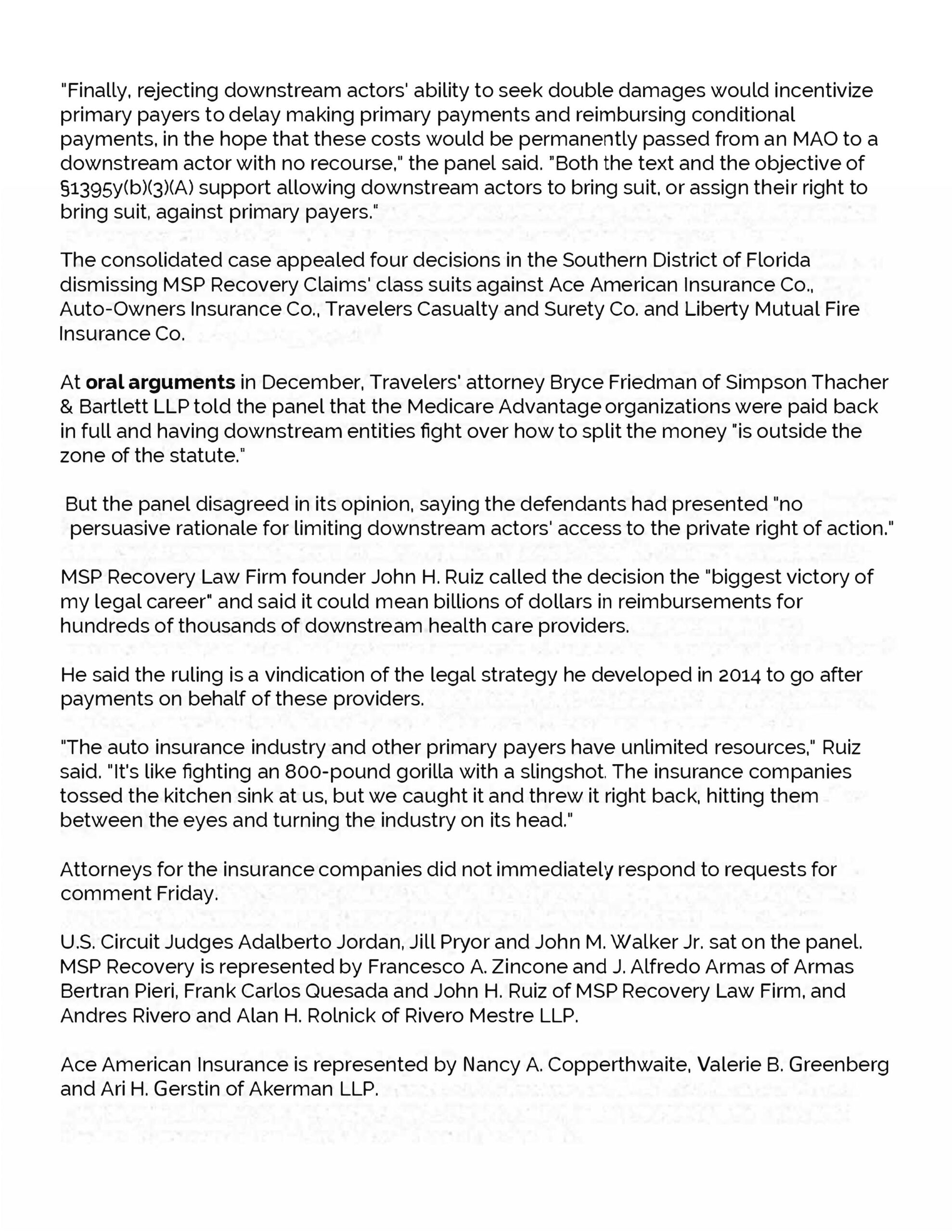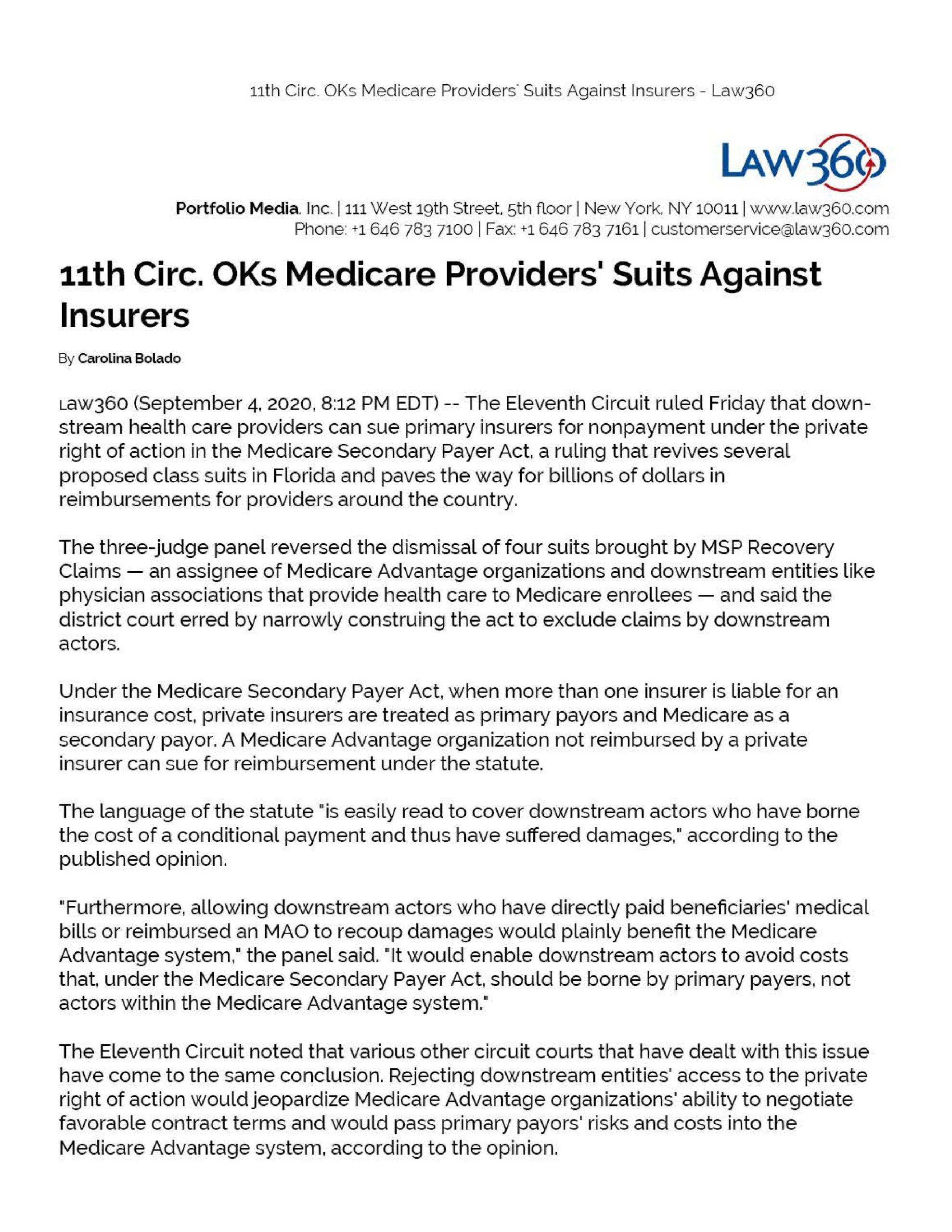 11th Circ. OKs Medicare Providers’ Suits Against Insurers
