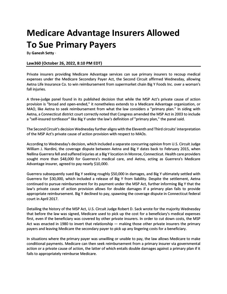 Medicare Advantage Insurers Allowed To Sue Primary Payers