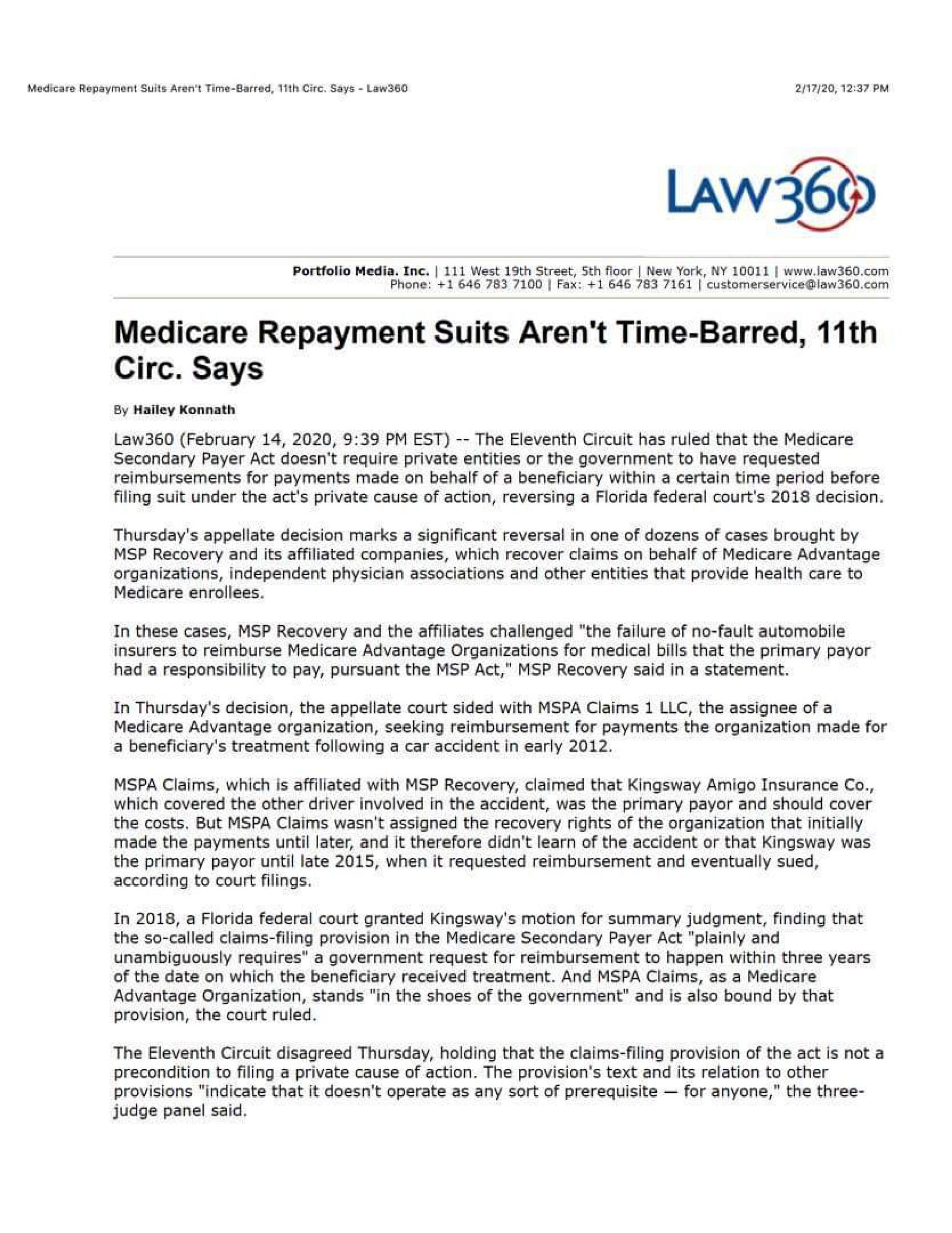 Medicare Repayment Suits Aren’t Time-Barred, 11th Circ. Says