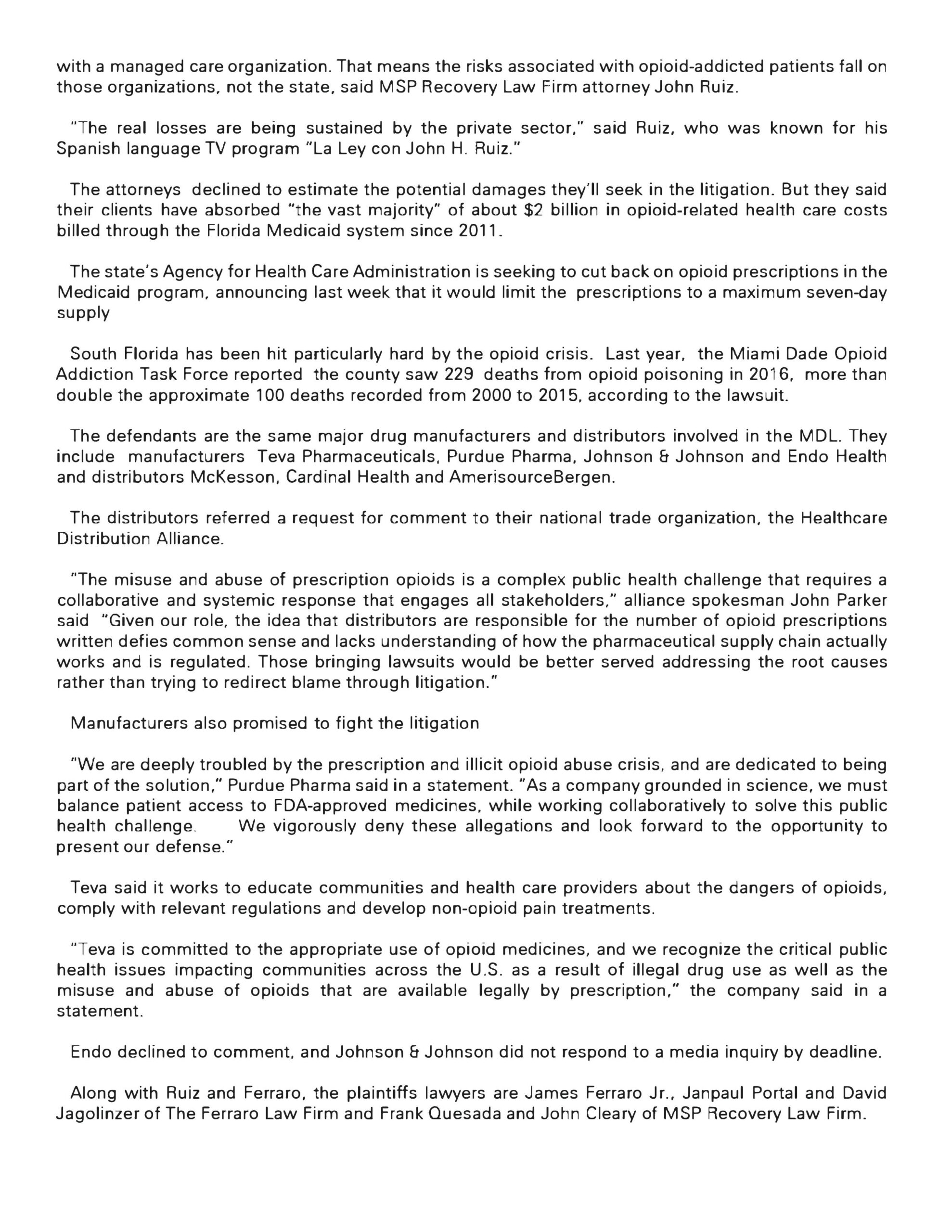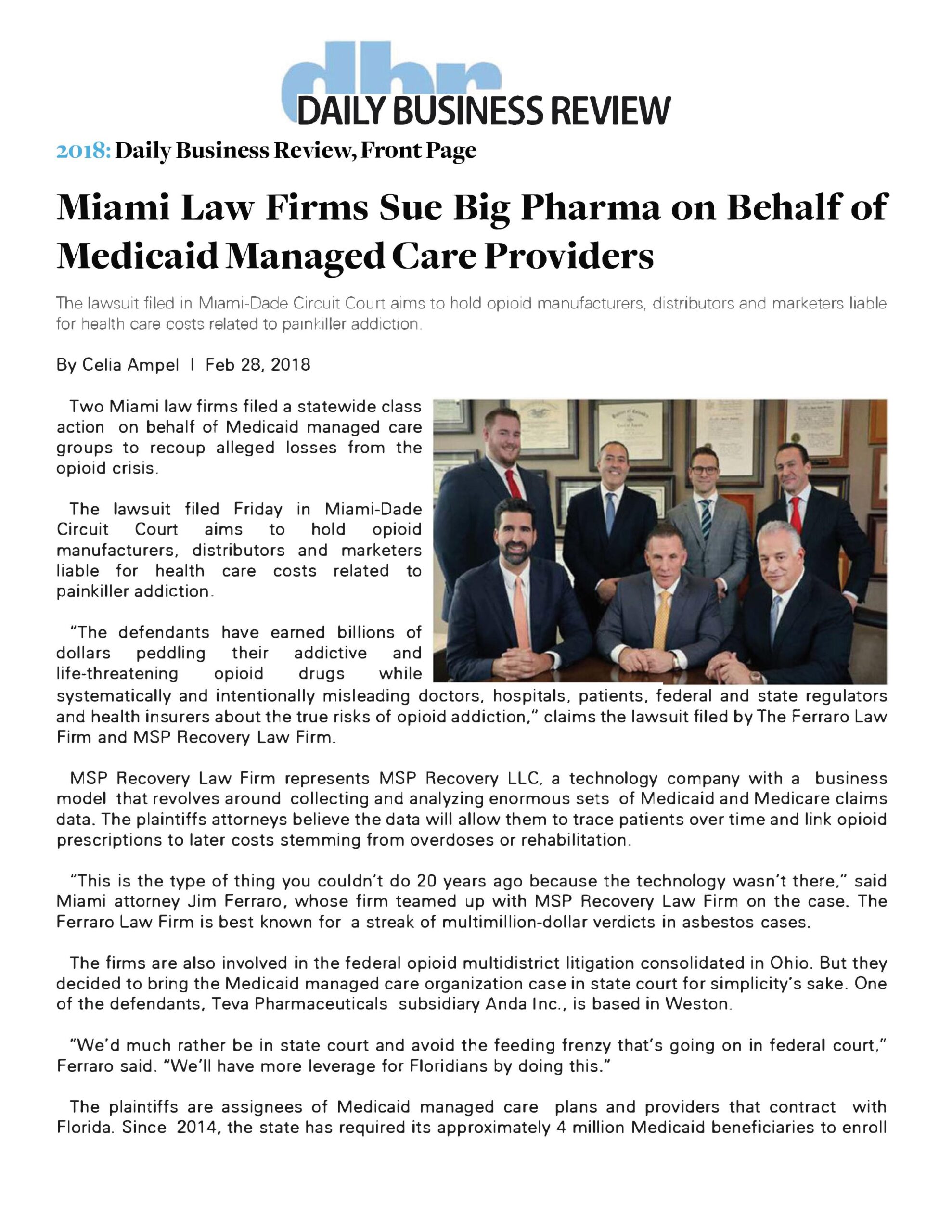 Miami Law Firms Sue Big Pharma on Behalf of Medicaid Managed Care Providers