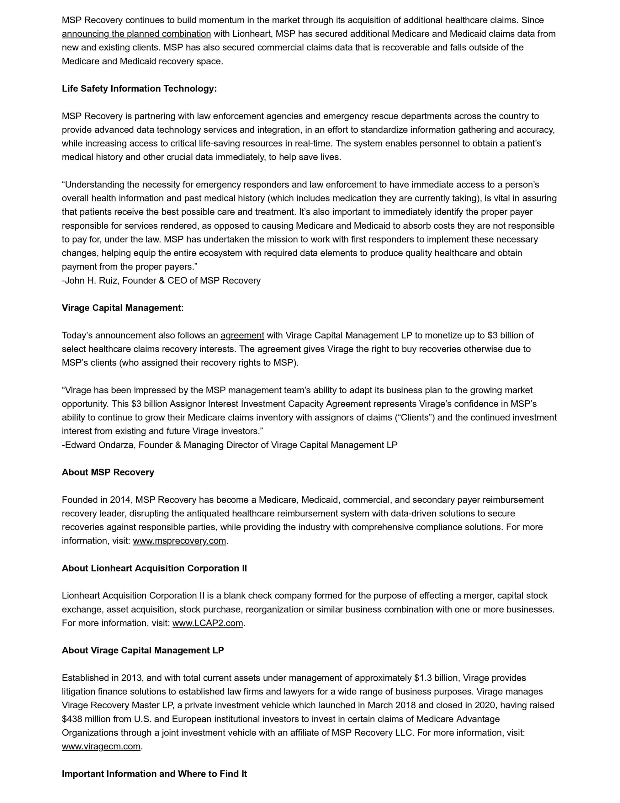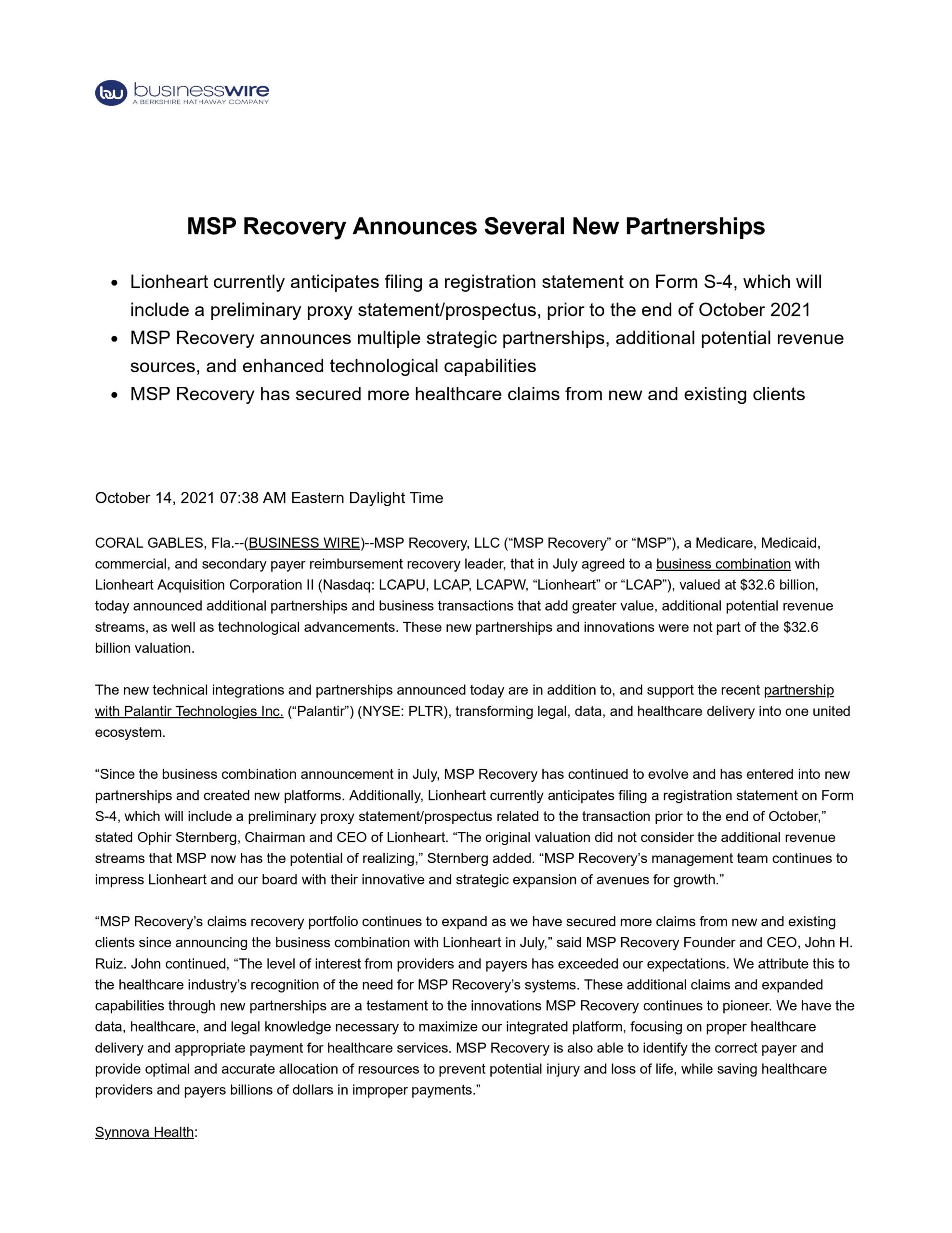 MSP Recovery Announces Several New Partnerships
