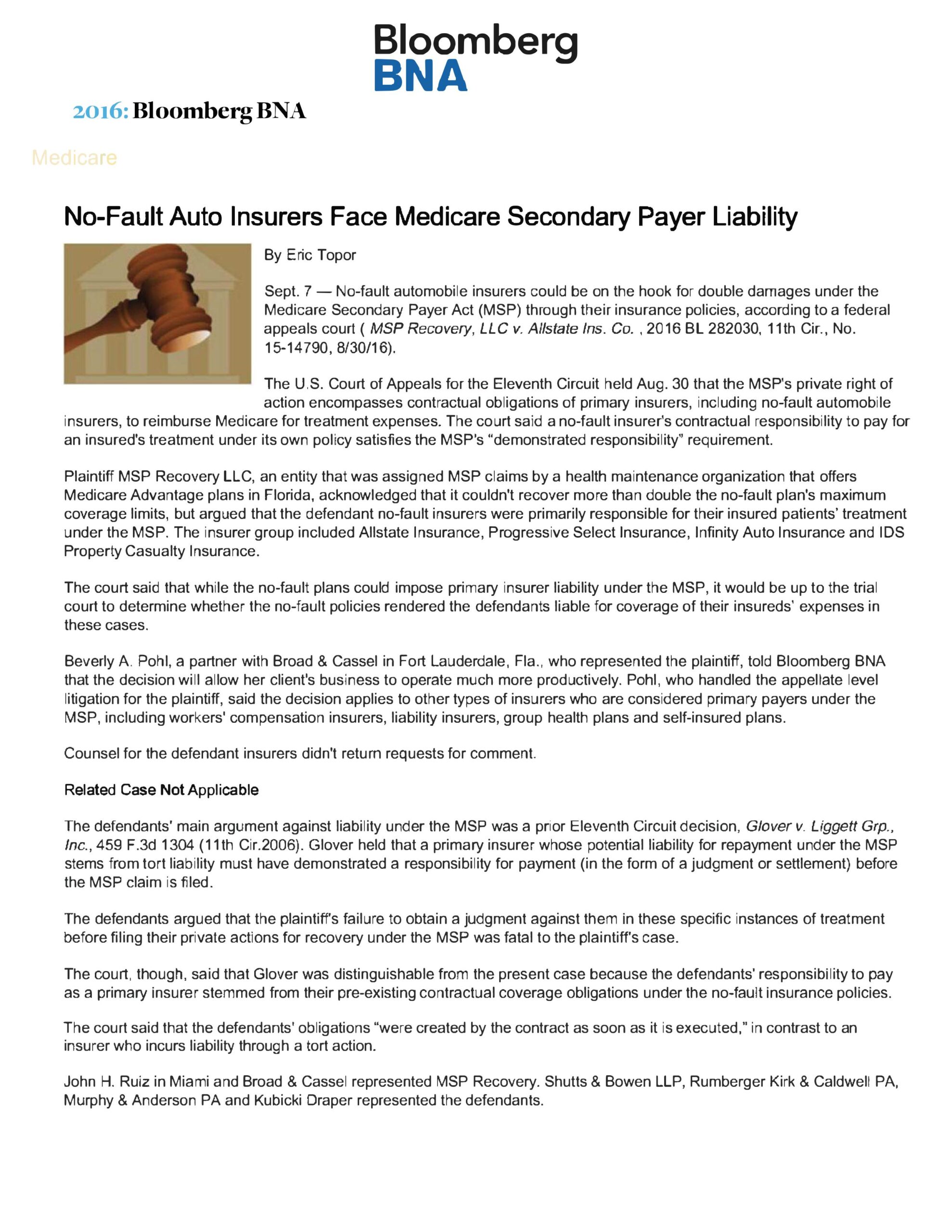 No-Fault Auto Insurers Face Medicare Secondary Payer Liability