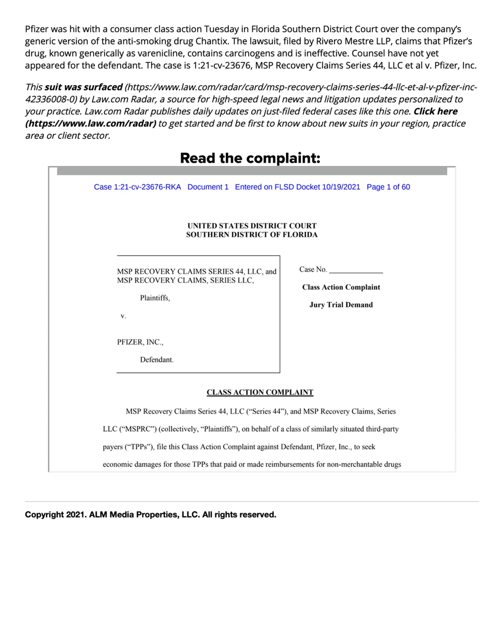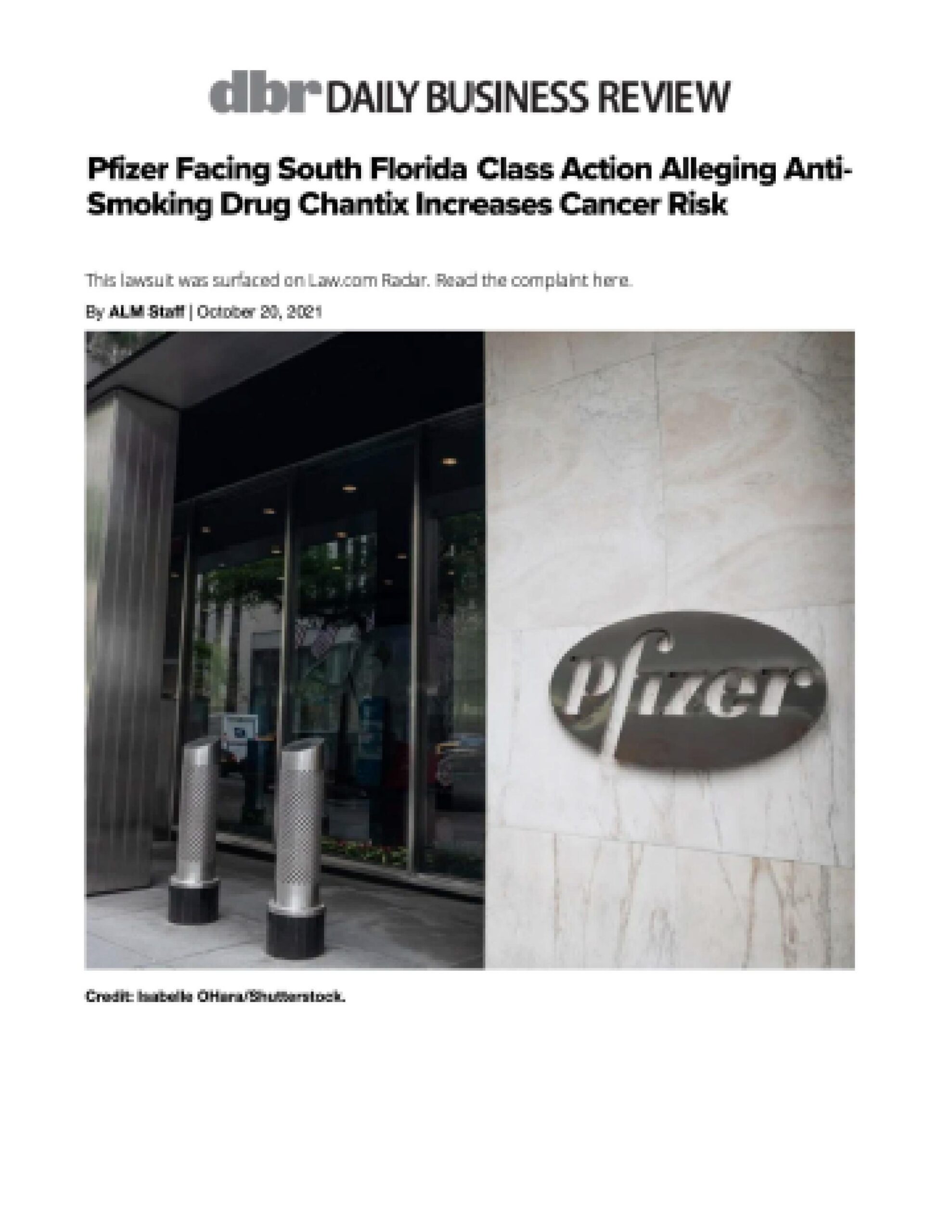 Pfizer Facing South Florida Class Action Alleging Anti-Smoking Drug Chantix Increases Cancer Risk
